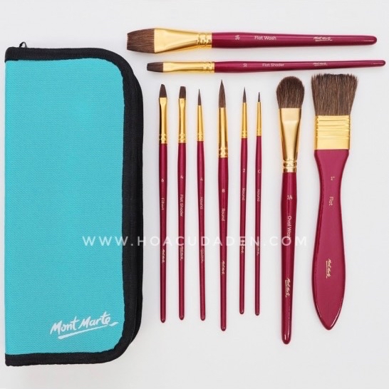 bộ gồm 10 cọ vẽ lông thú như hình chuyên cho màu nước.