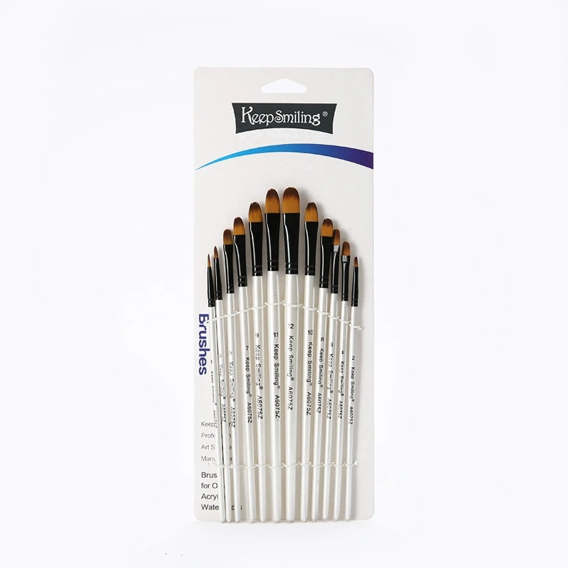 Bộ 12 cây cọ vẽ, đáp ứng nhu cầu vẽ chuyên dụng của người dùng với chất lượng đảm bảo để tạo nên đường nét tinh tế, nhẹ nhàng và sắc sảo.