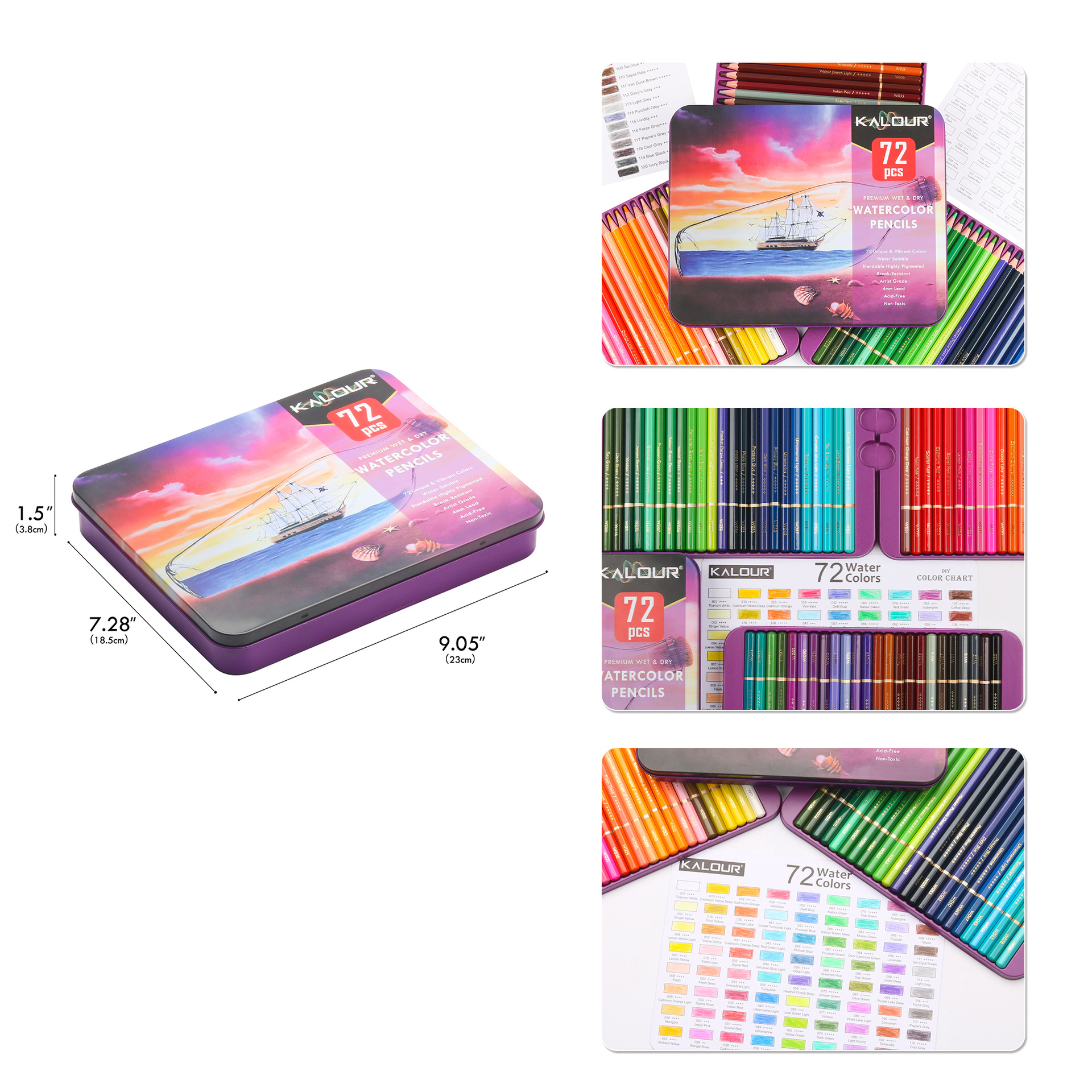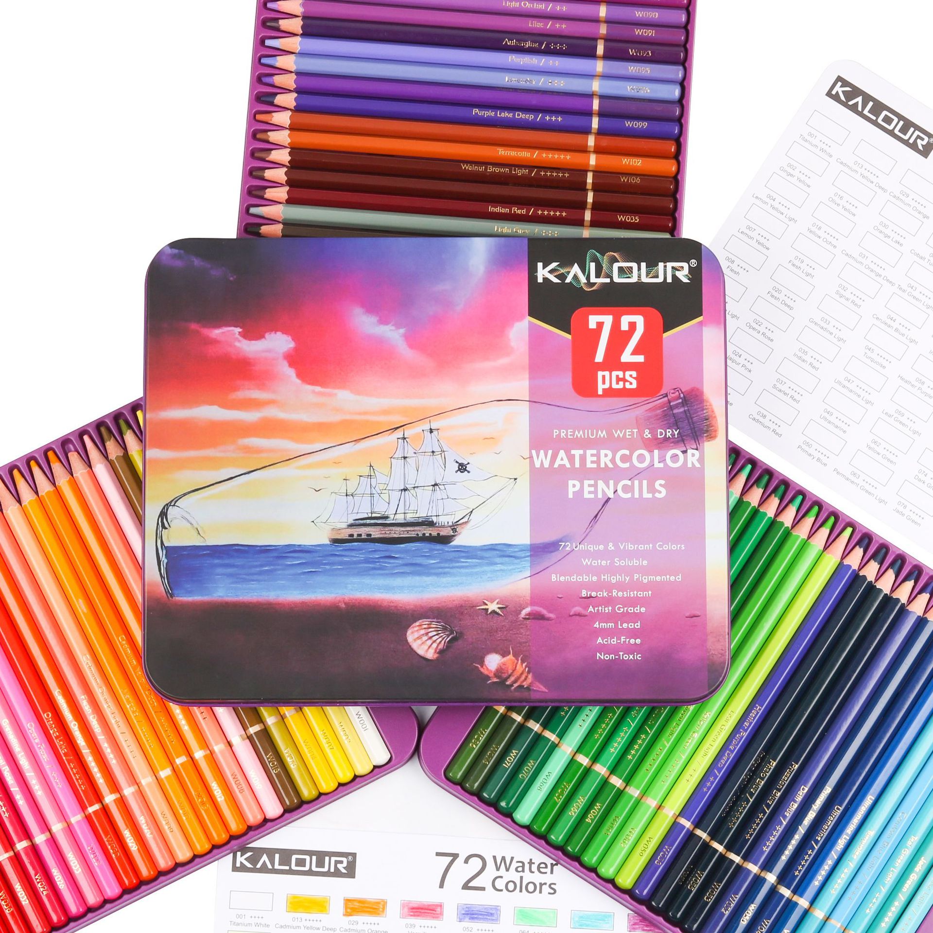 Bộ Chì Màu Nước 72 Màu Kalour (Hình Thuyền Tím)