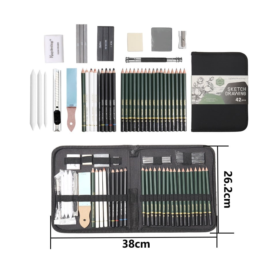 Chuyên dụng cho người vẽ mới hoặc đã chuyên nghiệp, bộ sản phẩm đầy đủ được đựng trong túi vài kéo như hình chắc chắn và sang trọng.