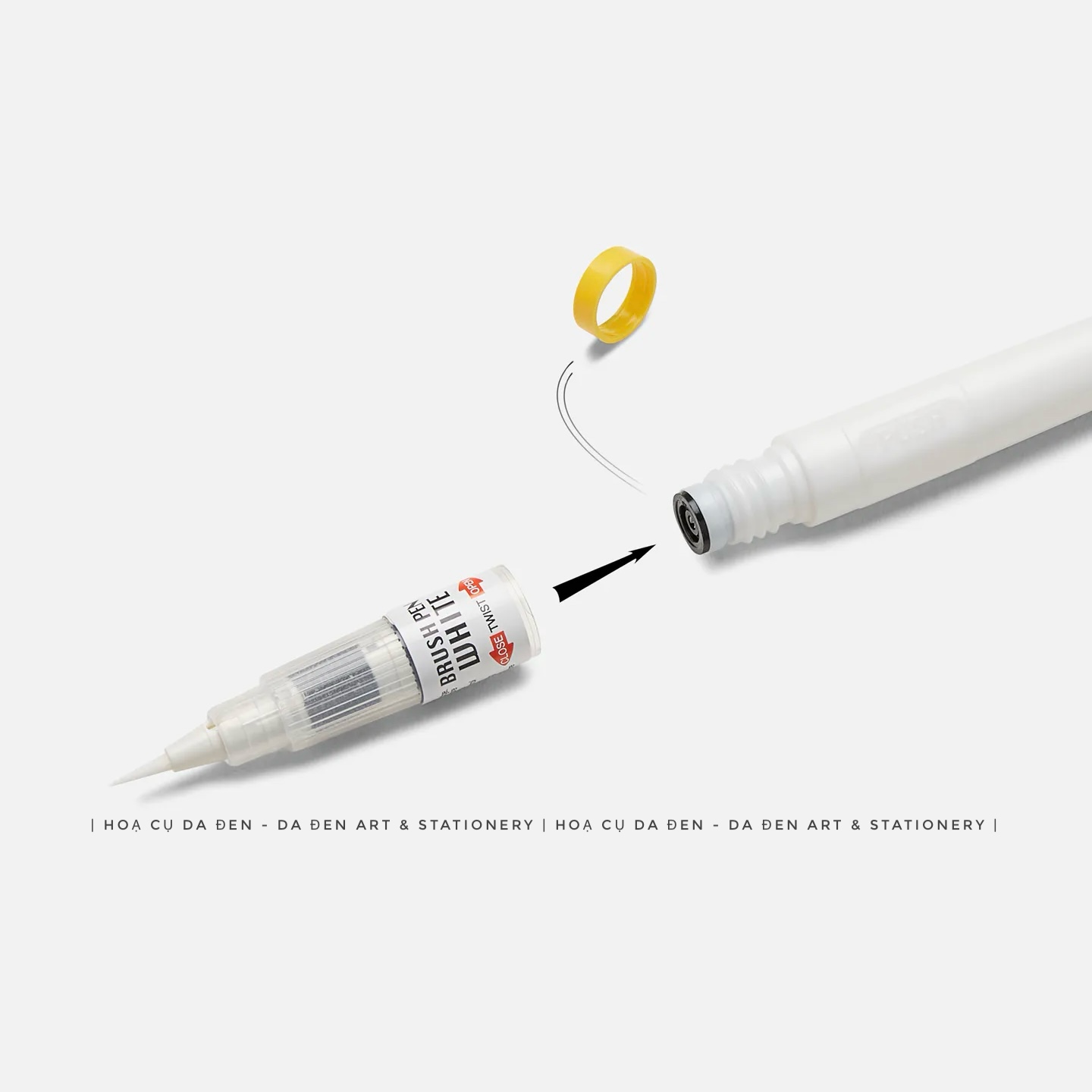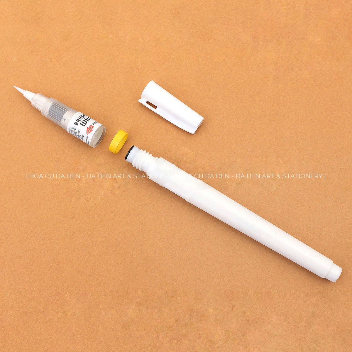 Mực trắng dùng nhấn sáng cho tranh như mắt, tóc, galaxy,... đầu cọ mềm mại có thể dùng viết thư pháp, hán tự mực thể hiện rõ trên các nền giấy sẩm màu hoặc đen. có thể kháng nước khi khô.