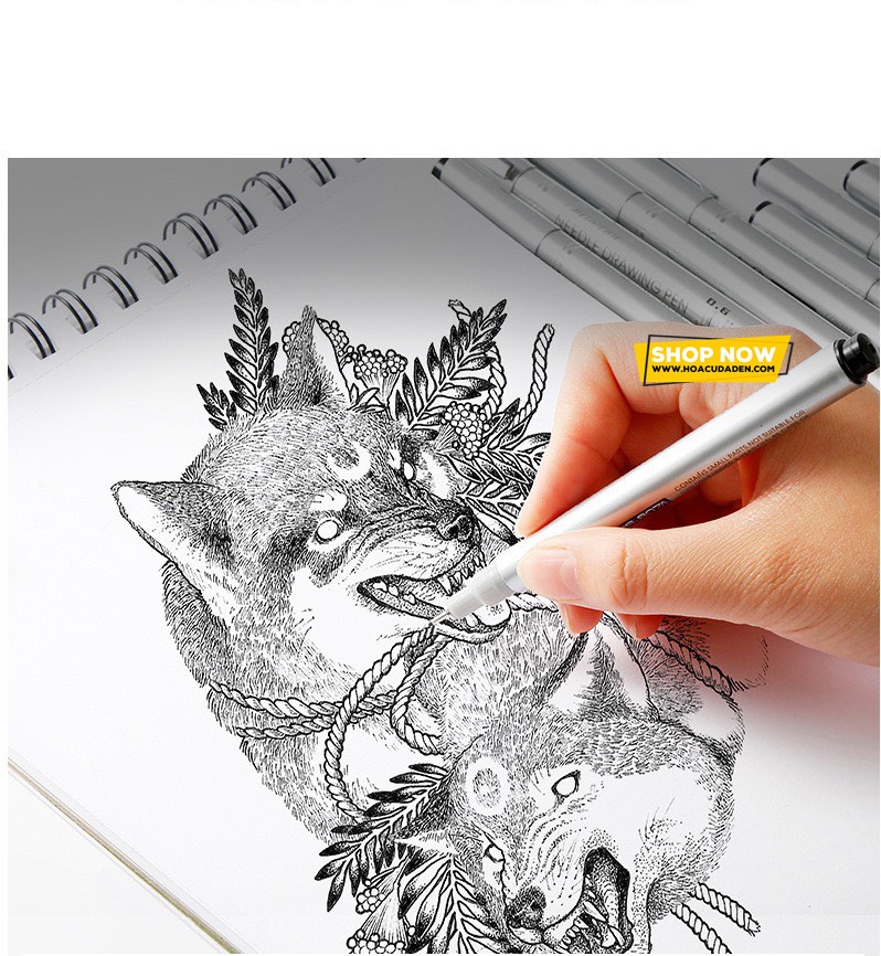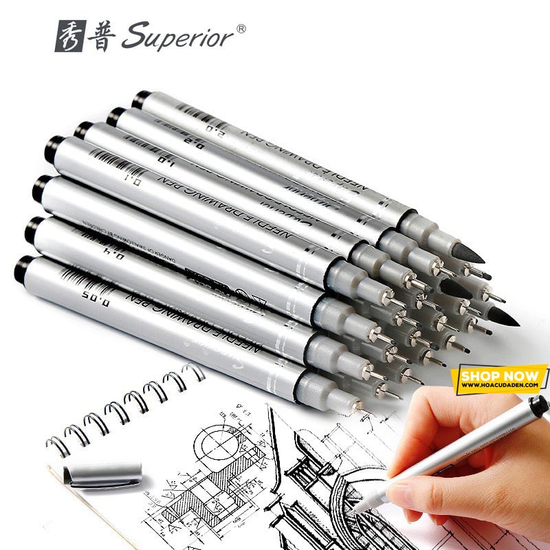 Bút mực đen, ngòi kim với 8 cỡ nét từ 0.05mm đến 0.8mm (005-01-02-03-04-05-06-08) cho bạn lựa chọn. Bút ra mực đều, đi nét mềm mại, dễ dàng nên bạn không cần phải thay đổi lực tay nhiều khi viết, vẽ. Màu mực bền lâu, không phai, không thấm nước. (sau khi viết một vài giây để mực khô, đổ nước lên mực không bị nhòe) bảo vệ thành quả của bạn.