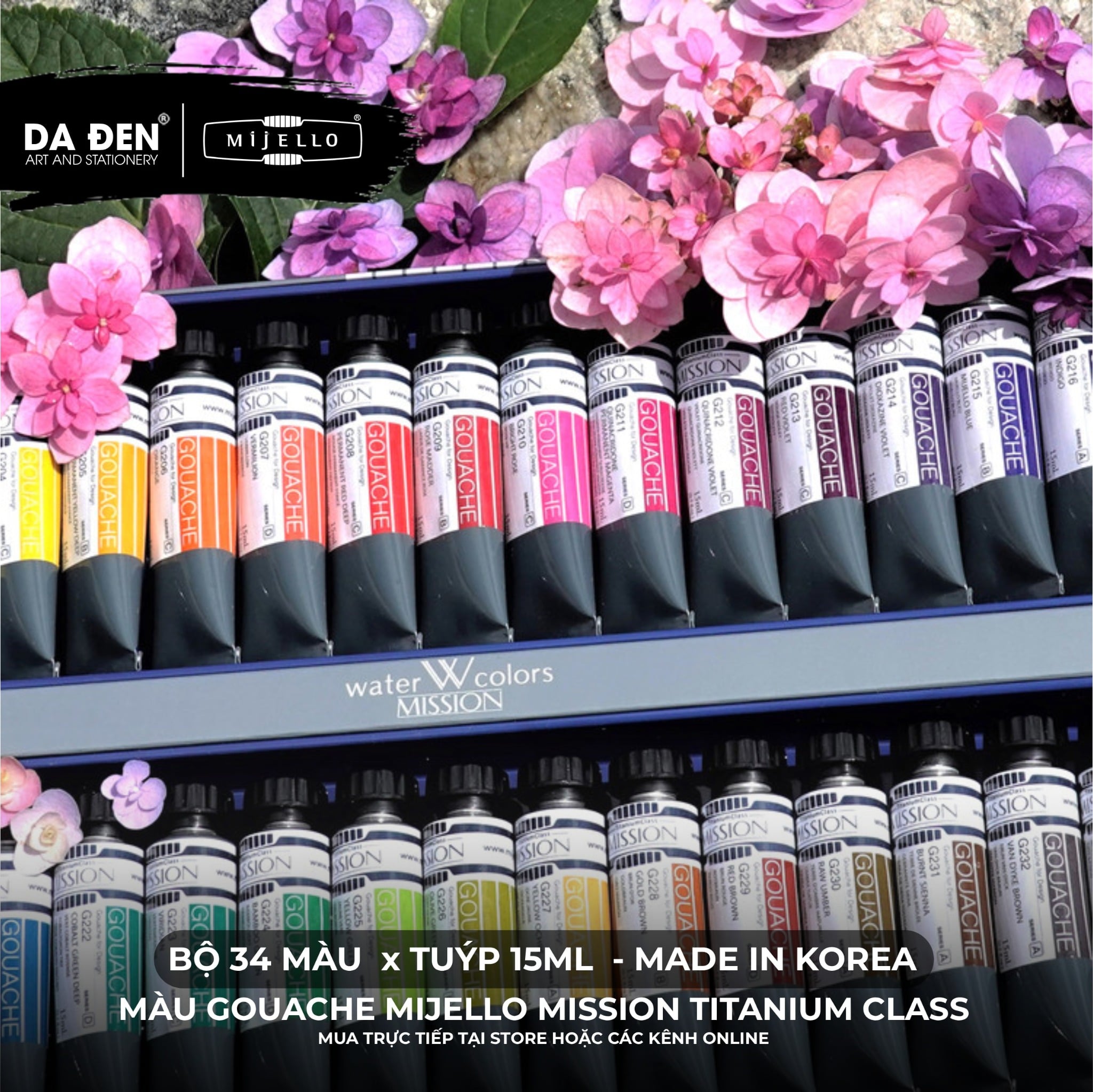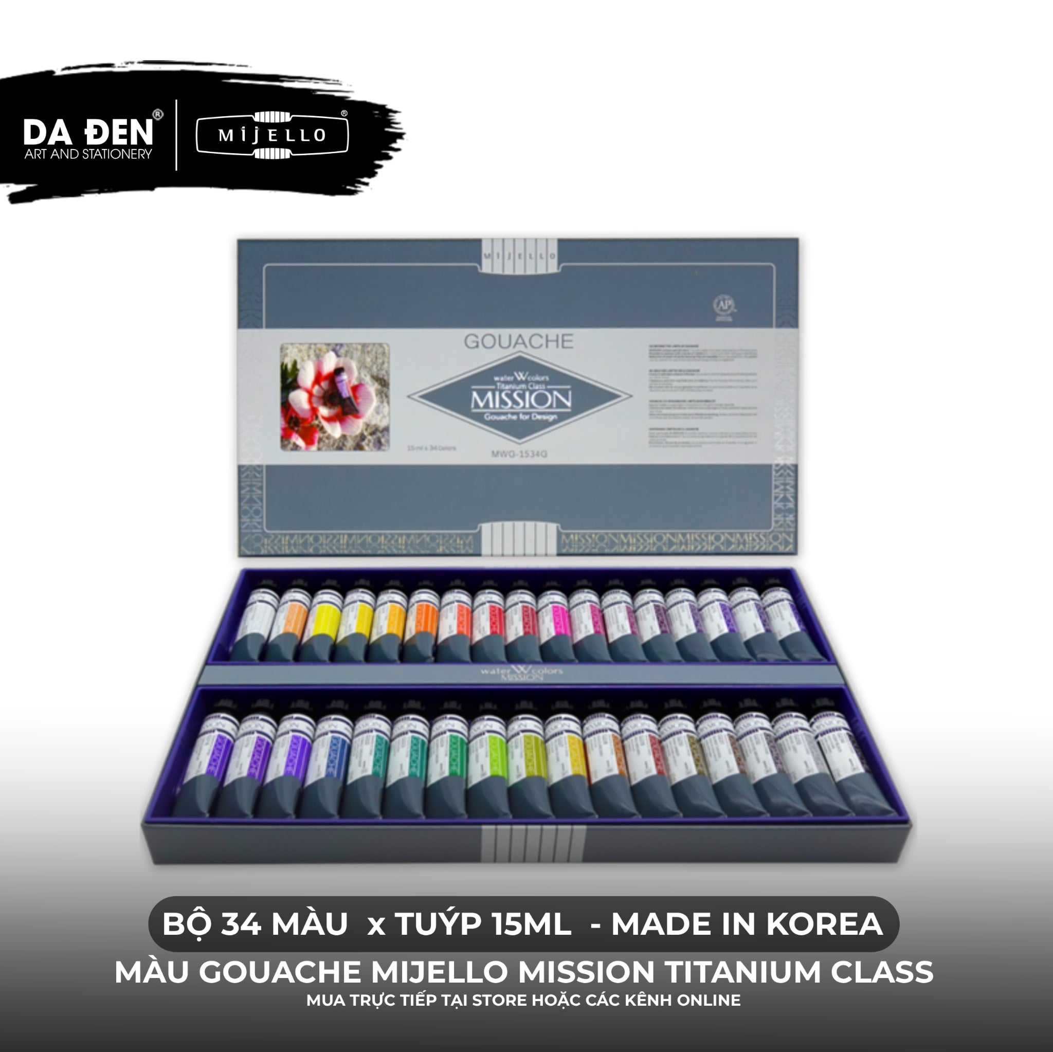[DA ĐEN] Bộ Màu Gouache Mijello Mission Titanium Class Cao Cấp - Bộ 12/34 x 15ml