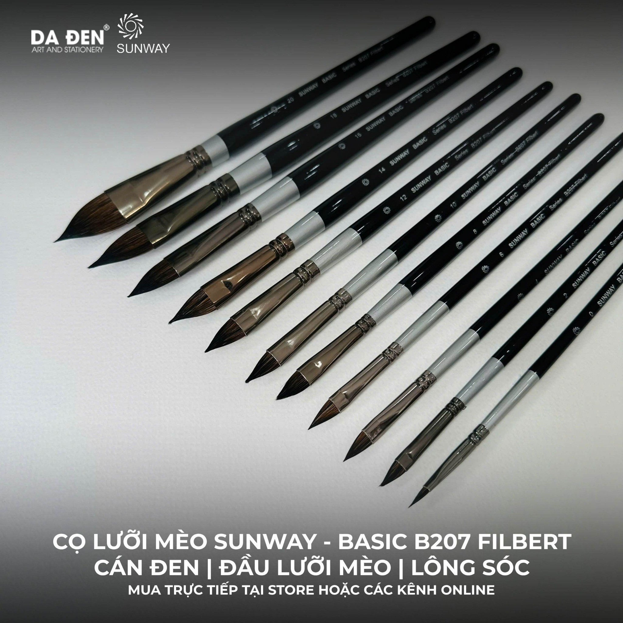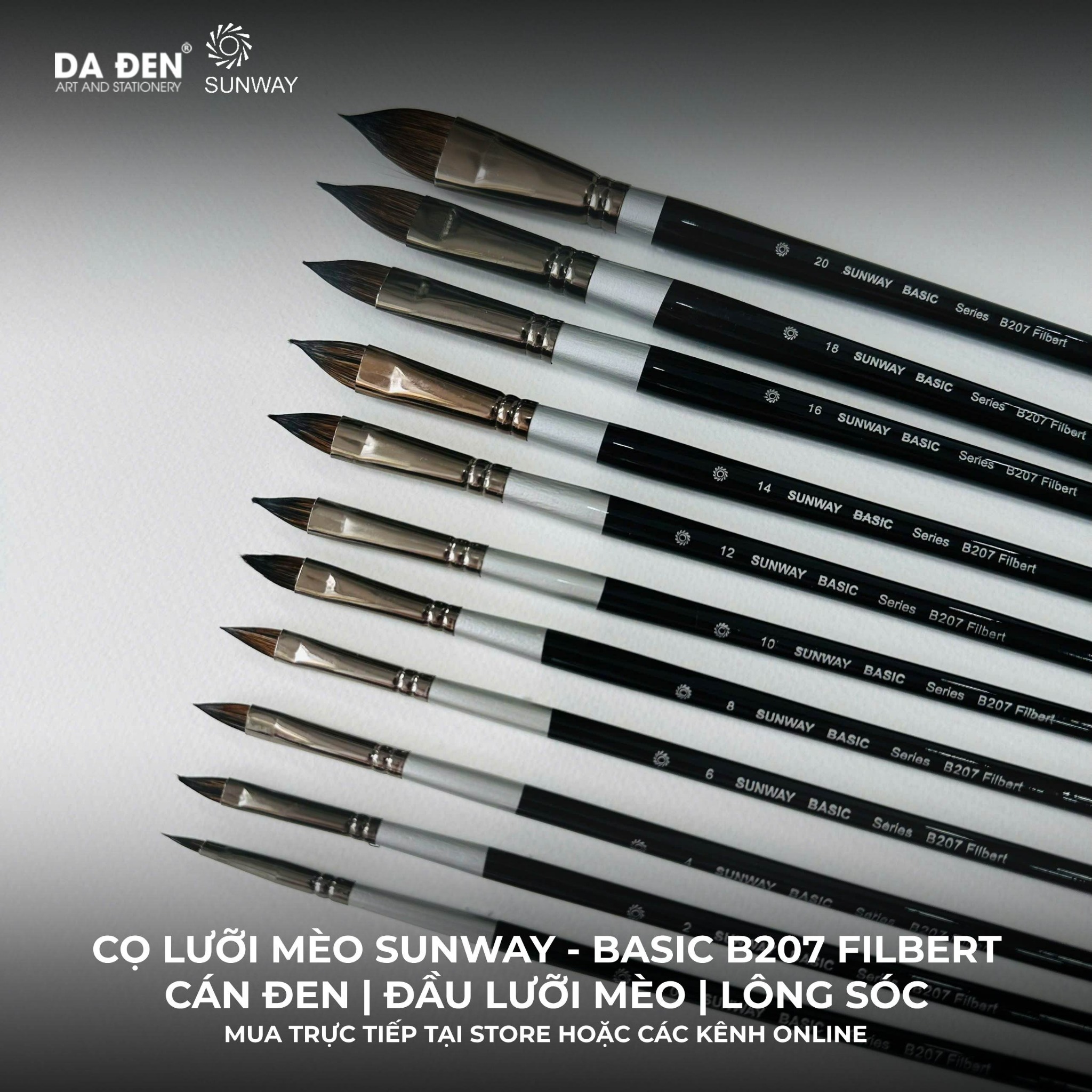 [DA ĐEN] Cọ Lưỡi Mèo Sunway - Basic B207 Filbert tại Họa Cụ DA ĐEN®