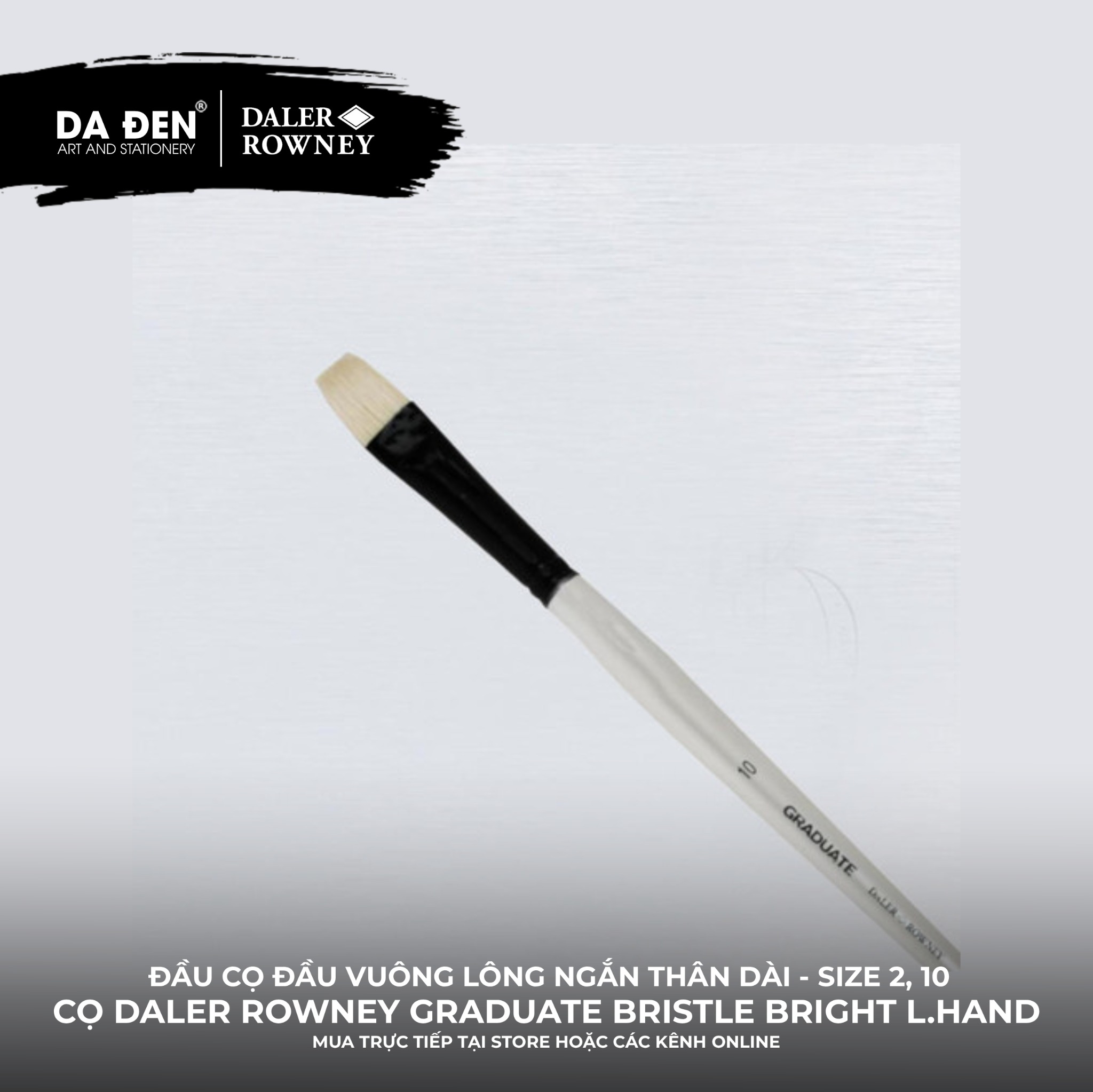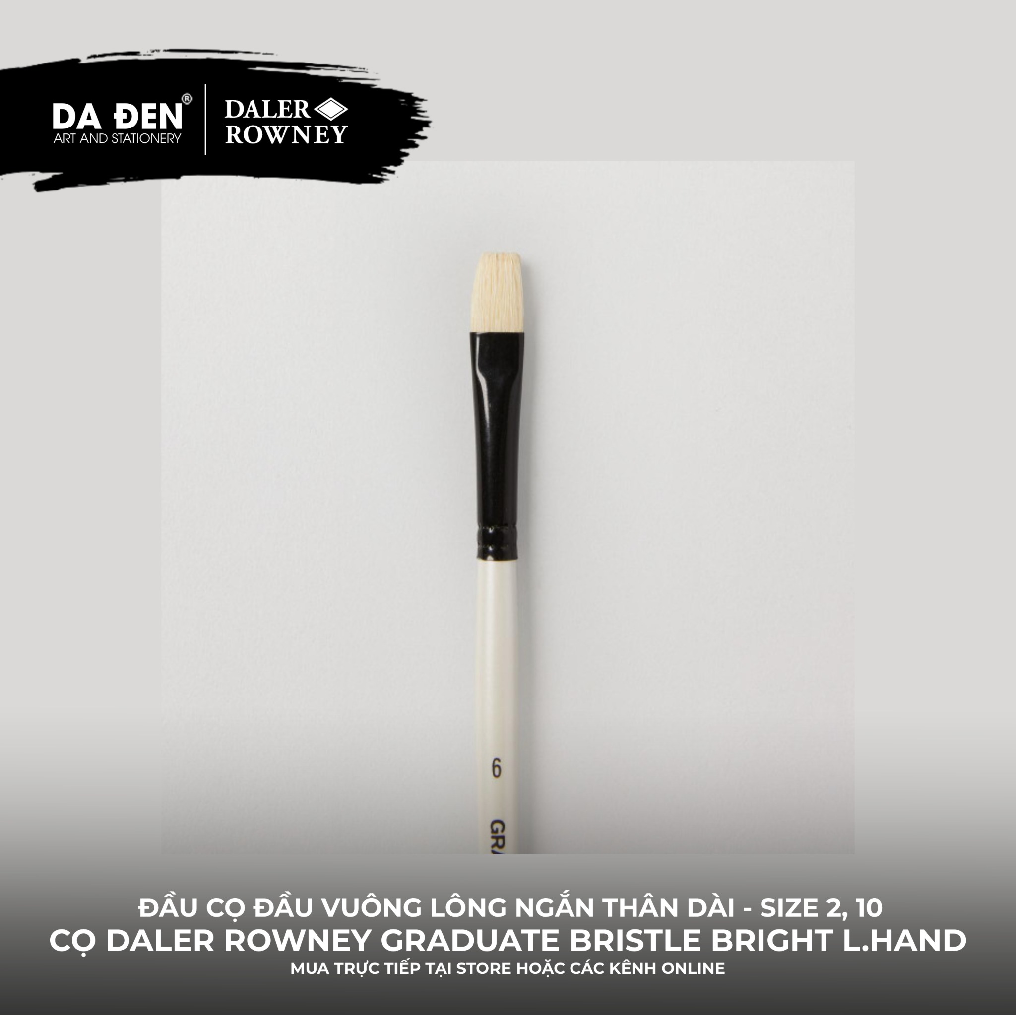 [DA ĐEN] Cọ Vuông Lông Ngắn Thân Dài Daler Rowney Graduate Long Handle Bristle Bright Brush