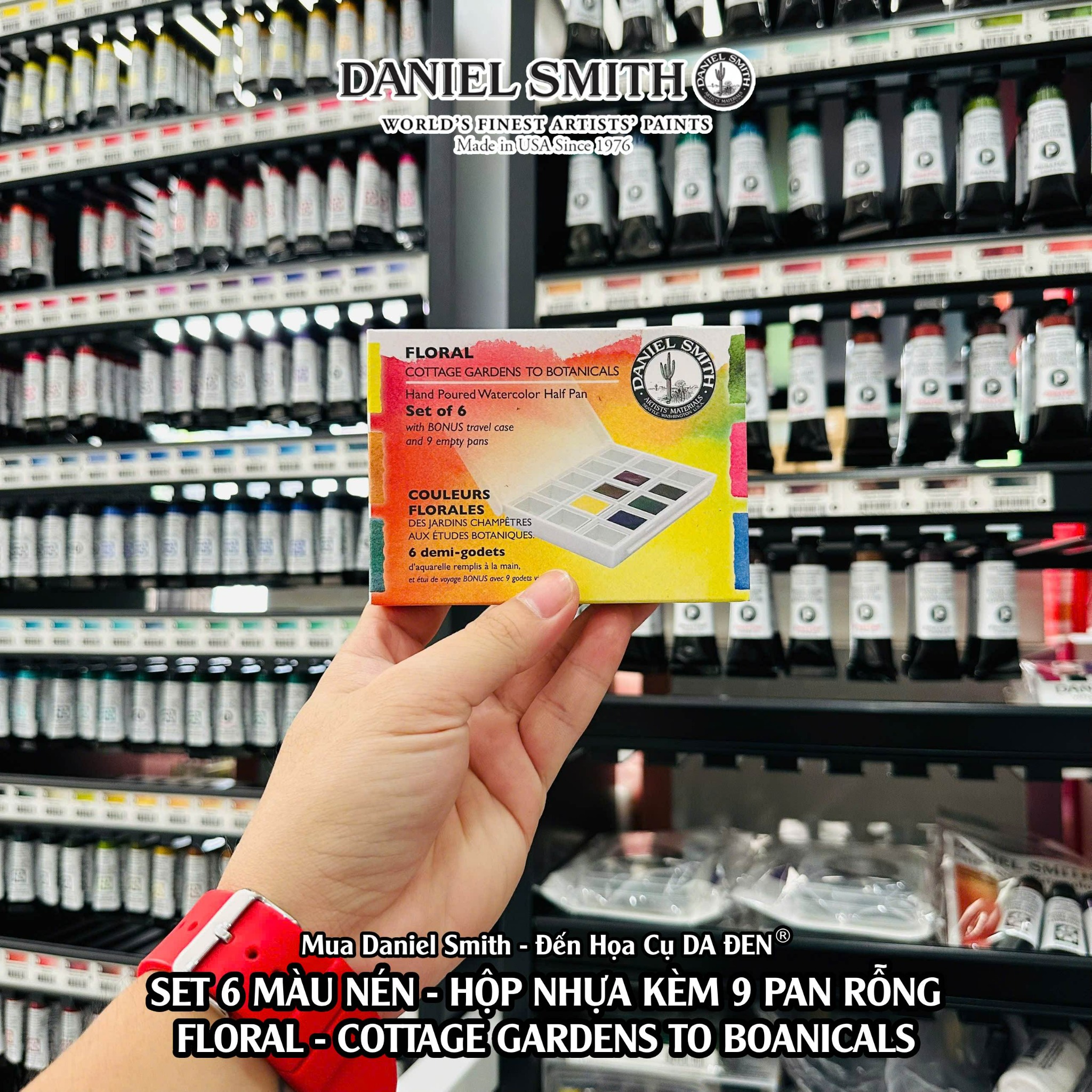 [DA ĐEN] Daniel Smith - Set 6 Màu Nước Nén Floral Half Pan