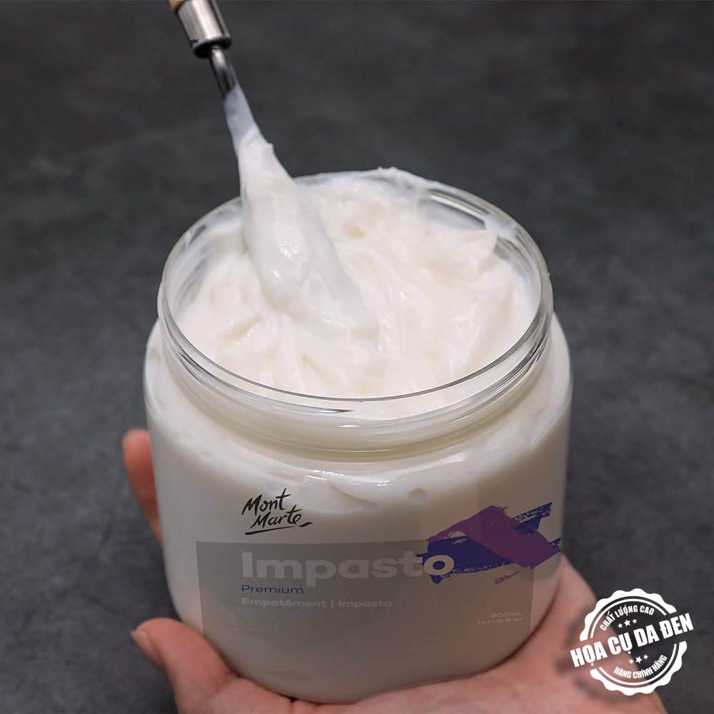 Mont Marte Impasto là chất trung gian khô trong suốt được sử dụng để tạo kết cấu và giữ nguyên nét cọ. Impasto có thể được trộn trực tiếp với acrylic và sẽ không làm thay đổi hiệu ứng của màu cuối cùng. Làm sạch bằng nước.