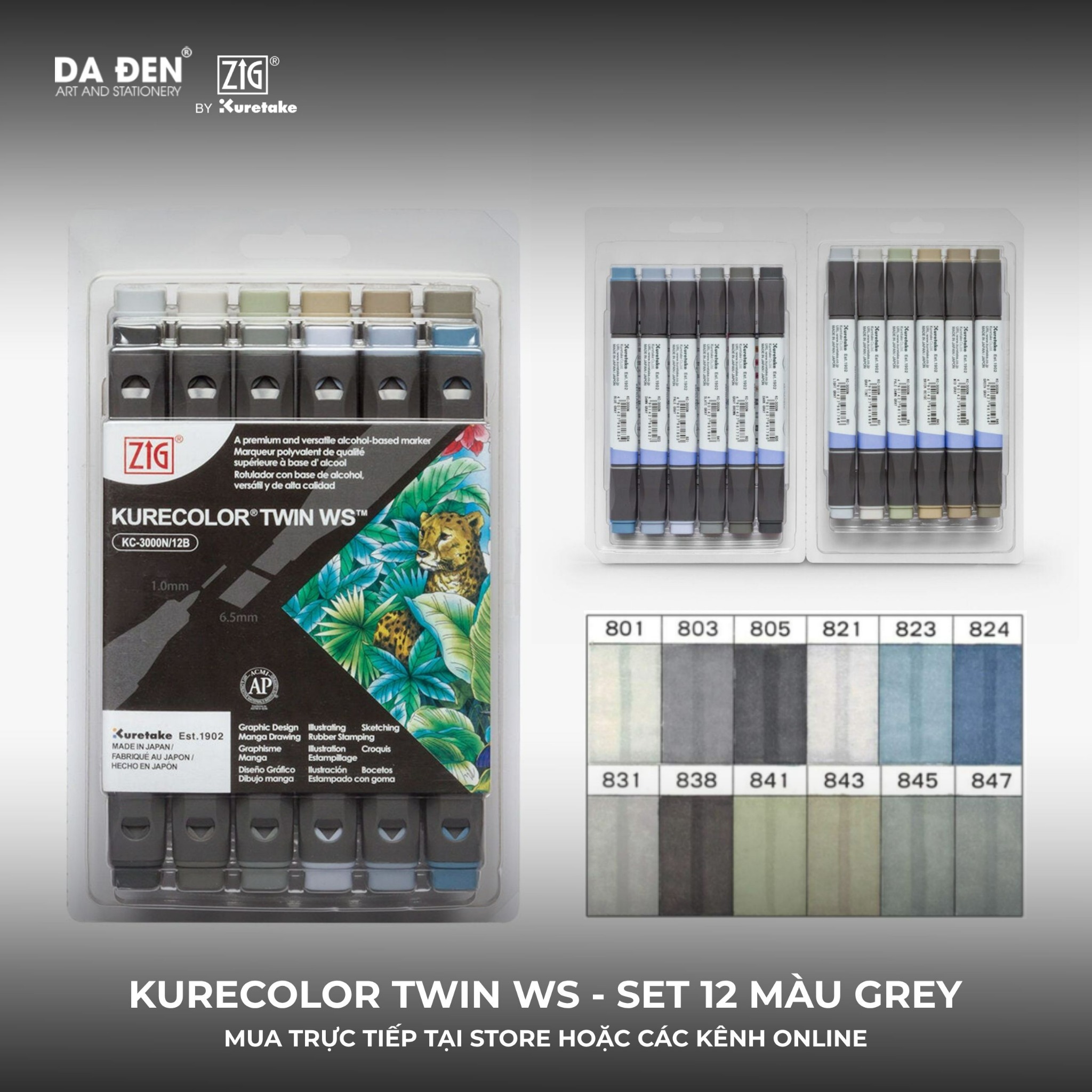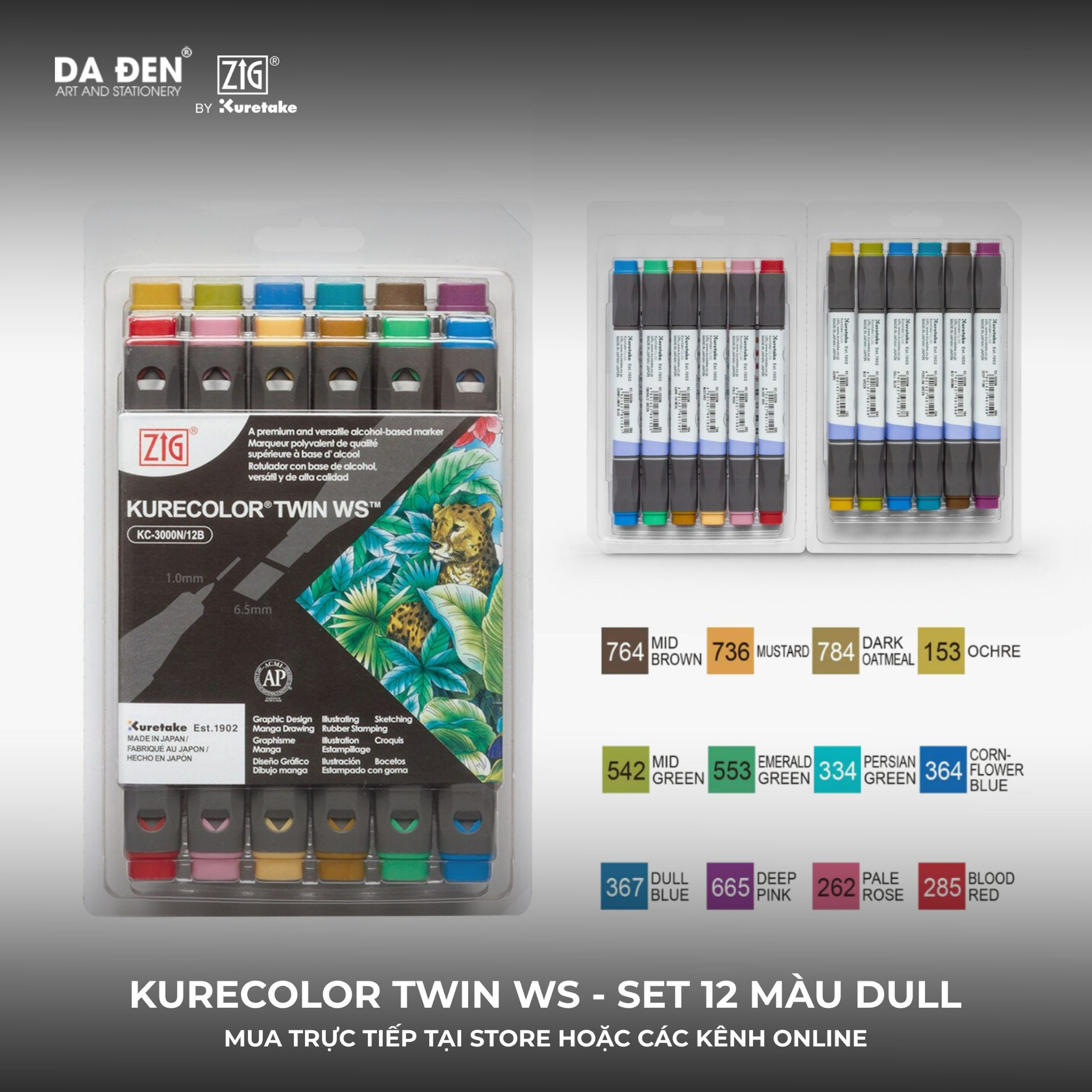 [DA ĐEN] Set 12 Bút Marker 2 Đầu ZIG Kurecolor KC3000 tại Họa Cụ DA ĐEN®