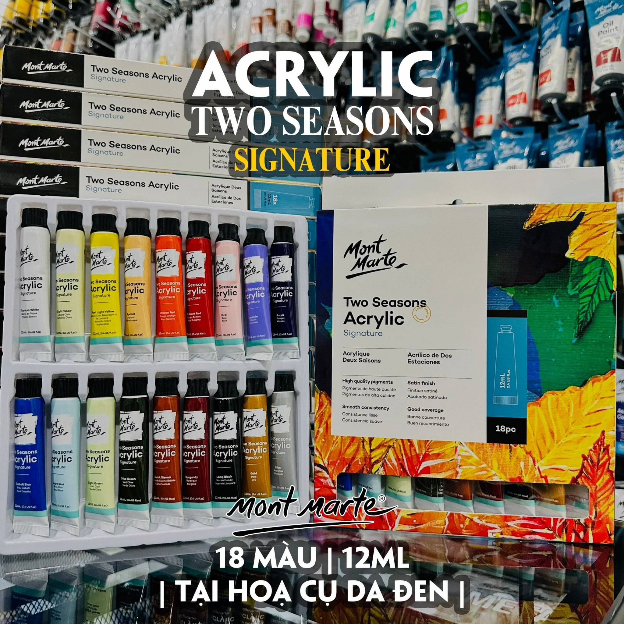 Set 18 màu này bao gồm các màu Pastel mới của dòng Acrylic sẽ là một trải nghiệm ngọt ngào cho tất cả các Họa sĩ từ Student grade hay Artist