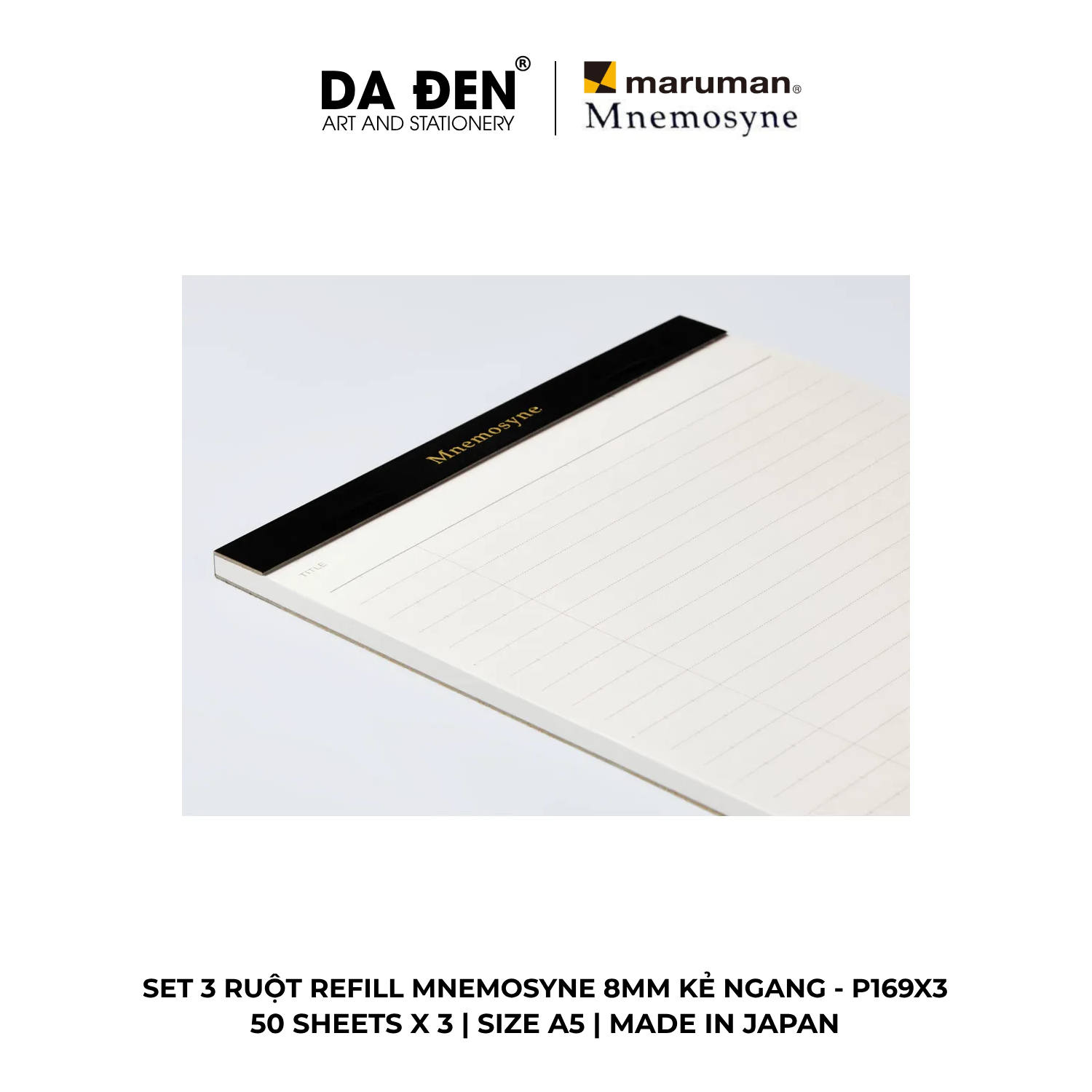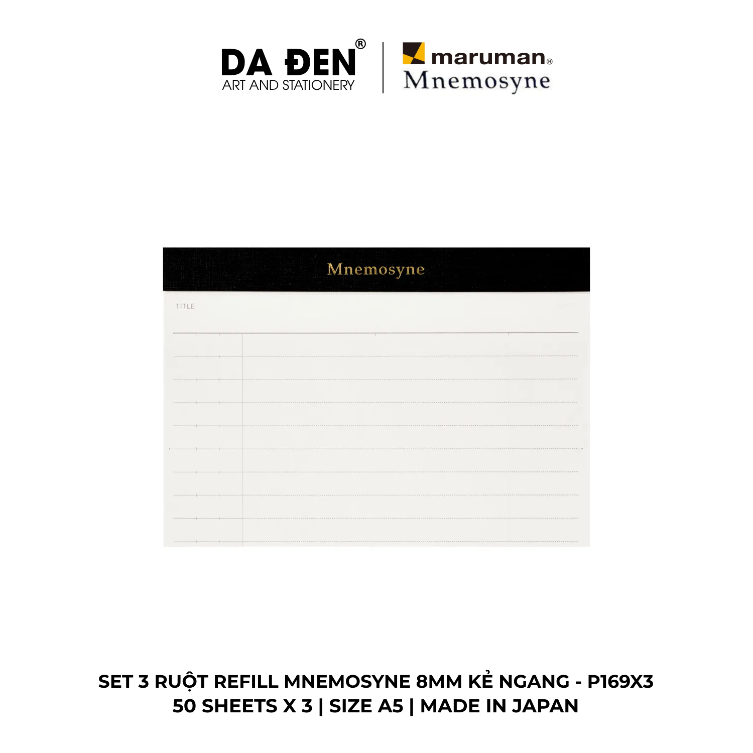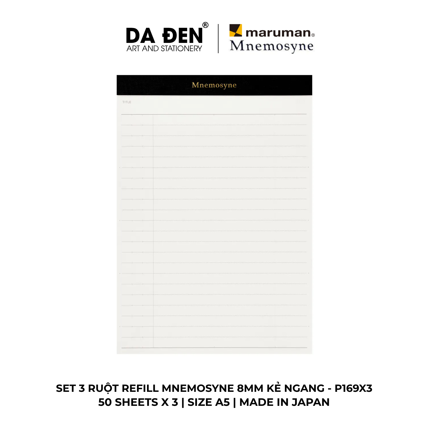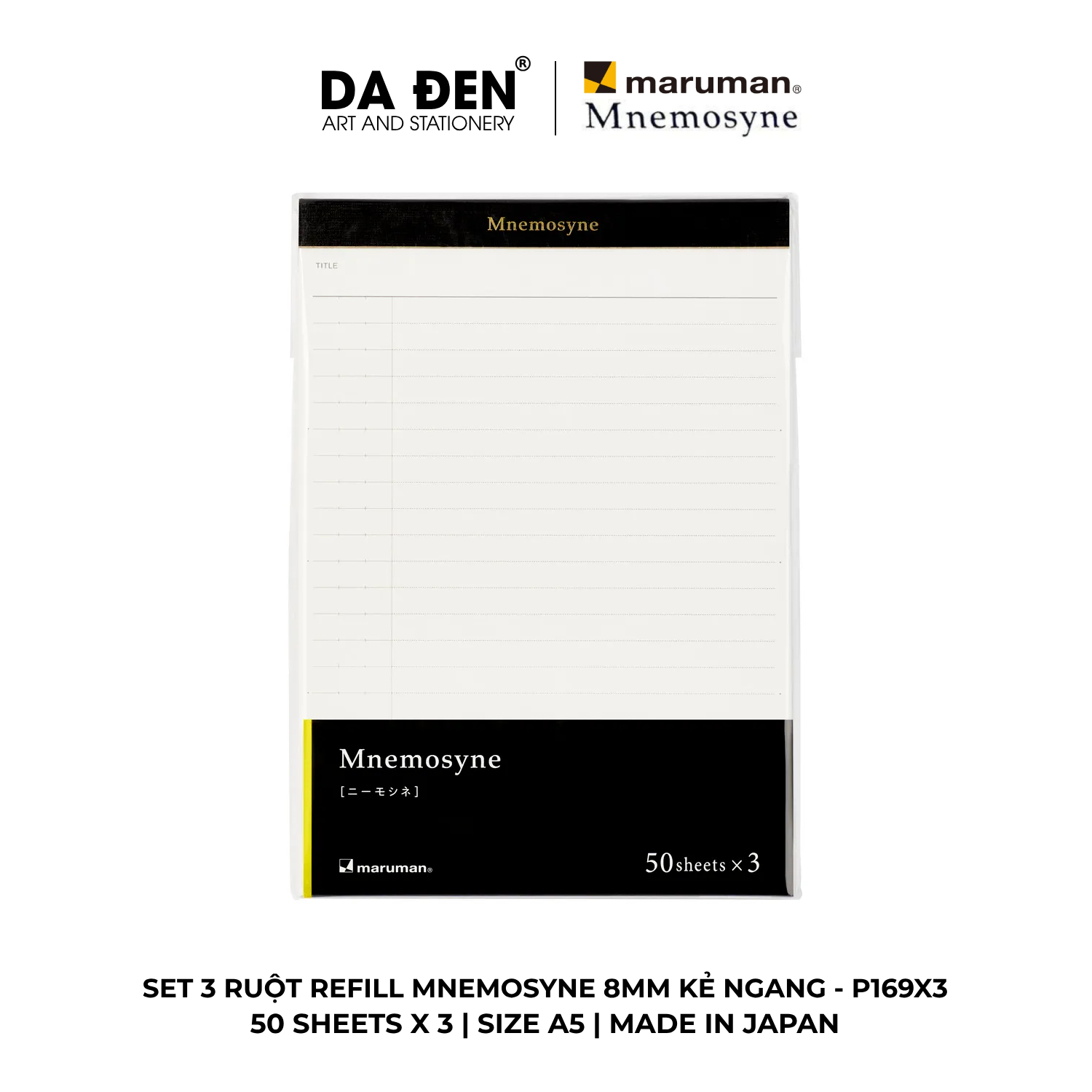 [DA ĐEN] Set 3 Ruột Refill Maruman Mnemosyne 8MM Kẻ Ngang P169X3