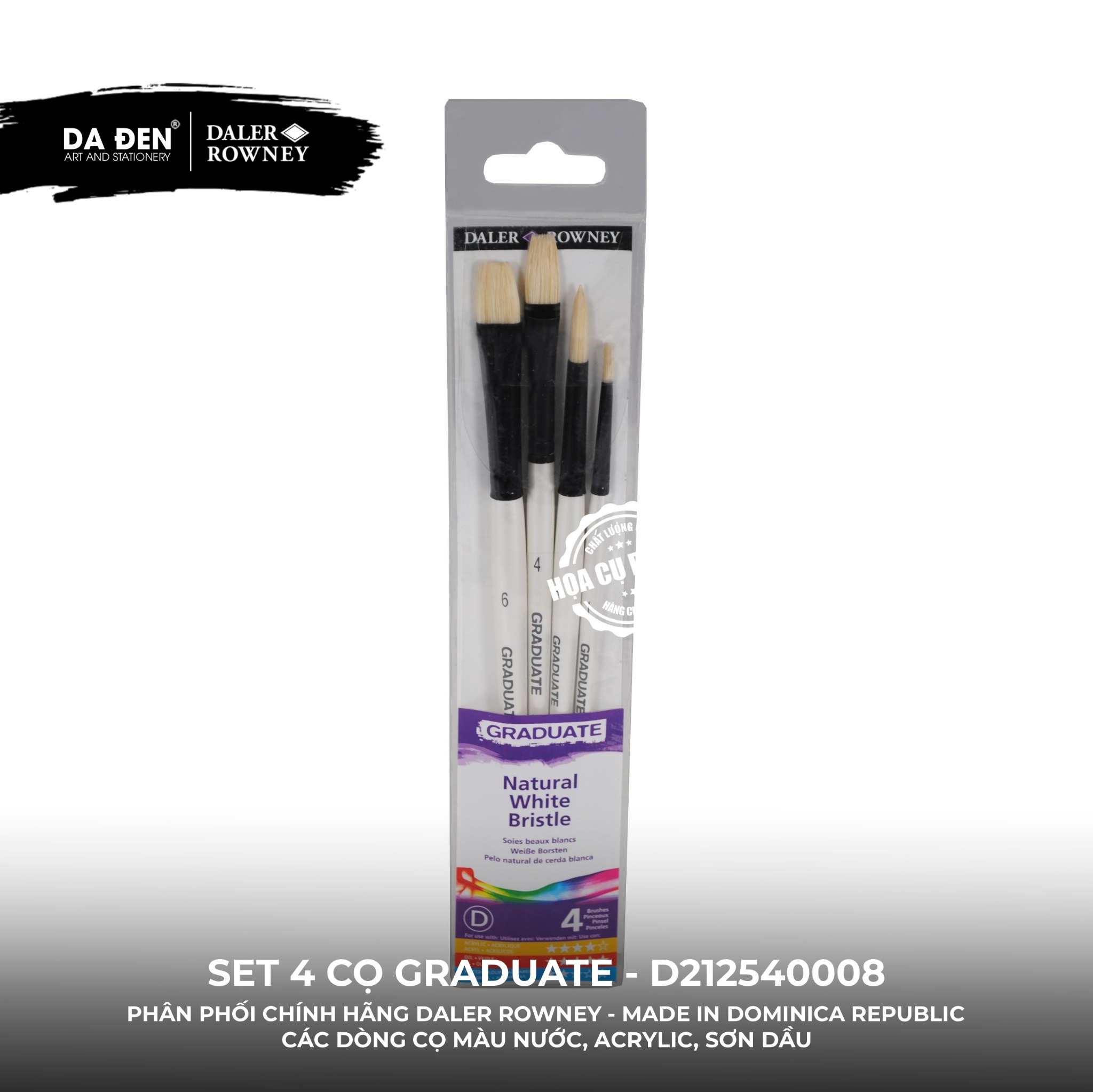 [DA ĐEN] Set 4 Cọ D212540008 Graduate của Daler Rowney Phù hợp cho cả Màu Nước, Acrylic, và Sơn Dầu