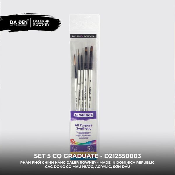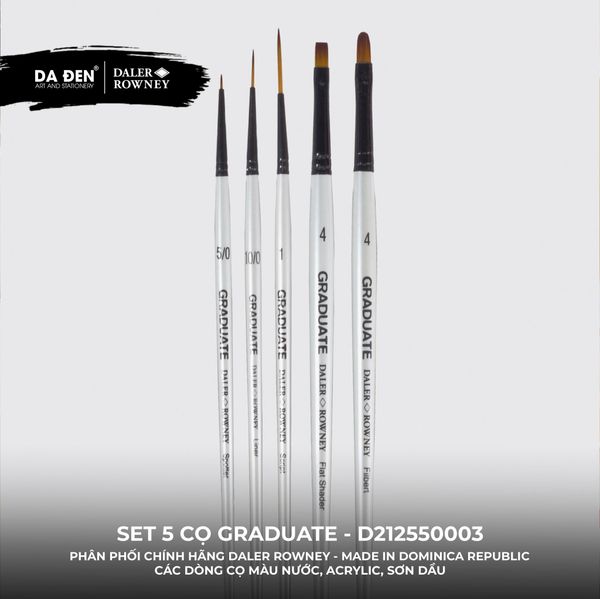 [DA ĐEN] Set 5 Cọ D212550003 Graduate của Daler Rowney phù hợp màu nước, acrylic, sơn dầu