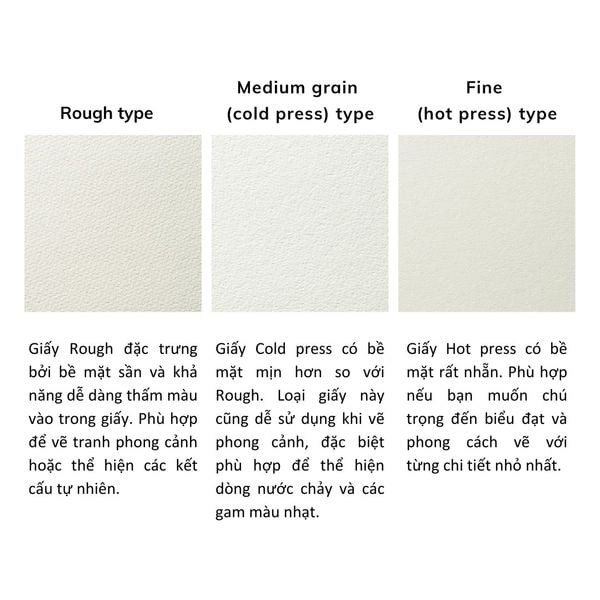 3 lựa chọn bề mặt giấy: Tùy phong cách và kỹ thuật cá nhân, bạn có thể chọn loại: