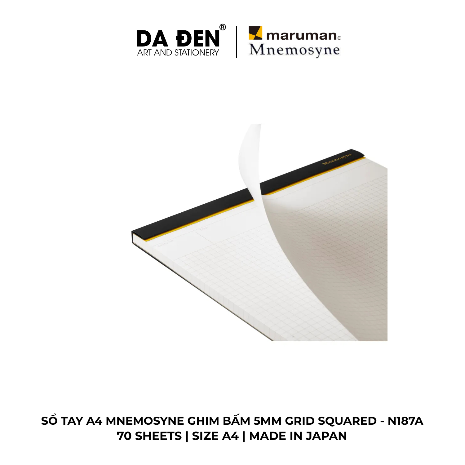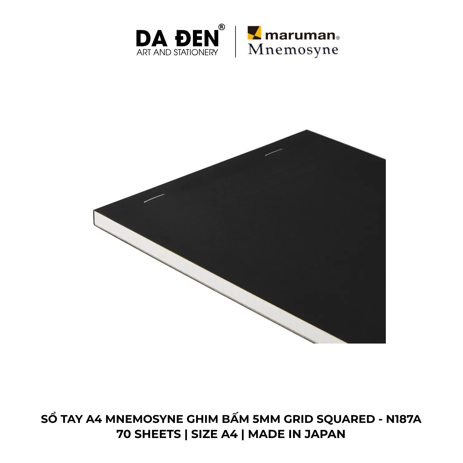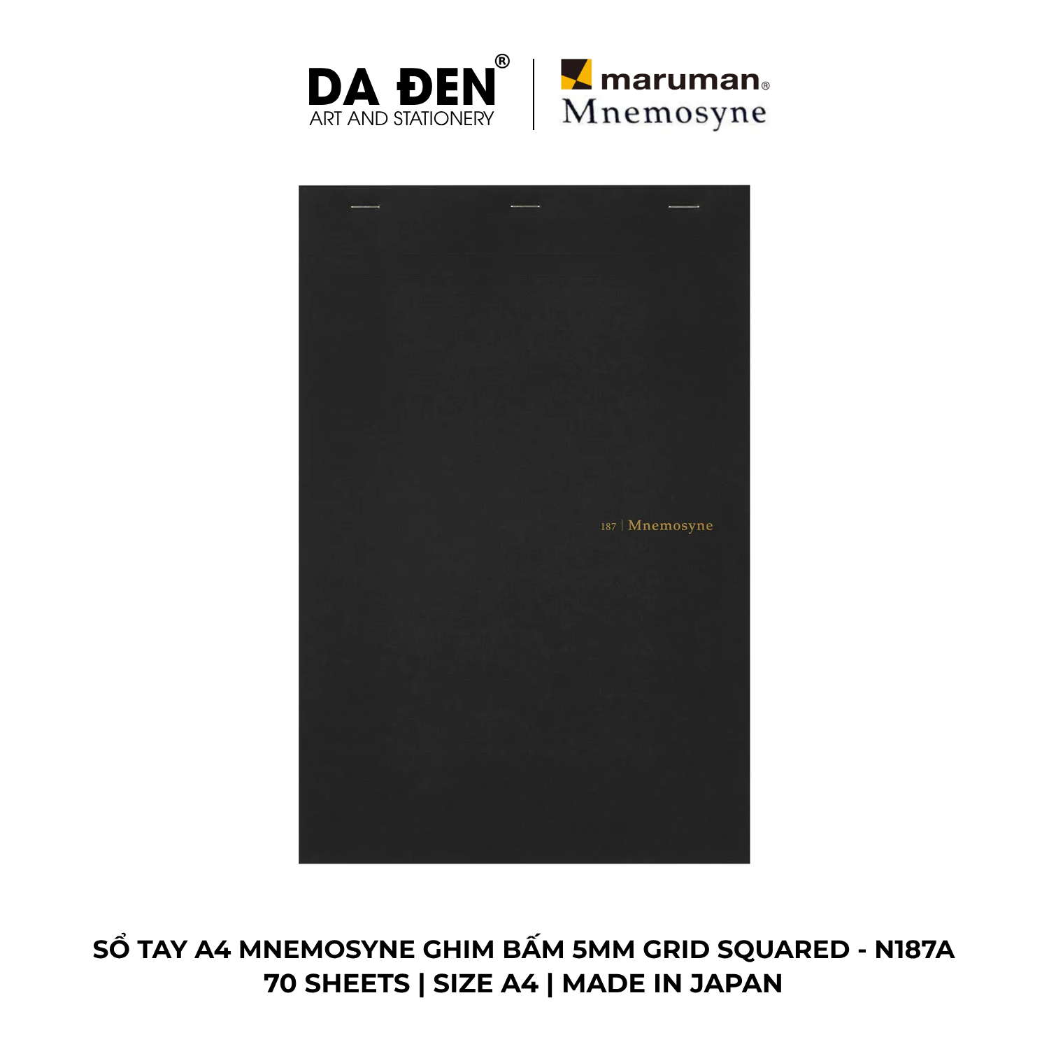 [DA ĐEN] Sổ Tay Maruman Mnemosyne Ghim Bấm 5mm Grid Squared A4 70 Tờ N187A