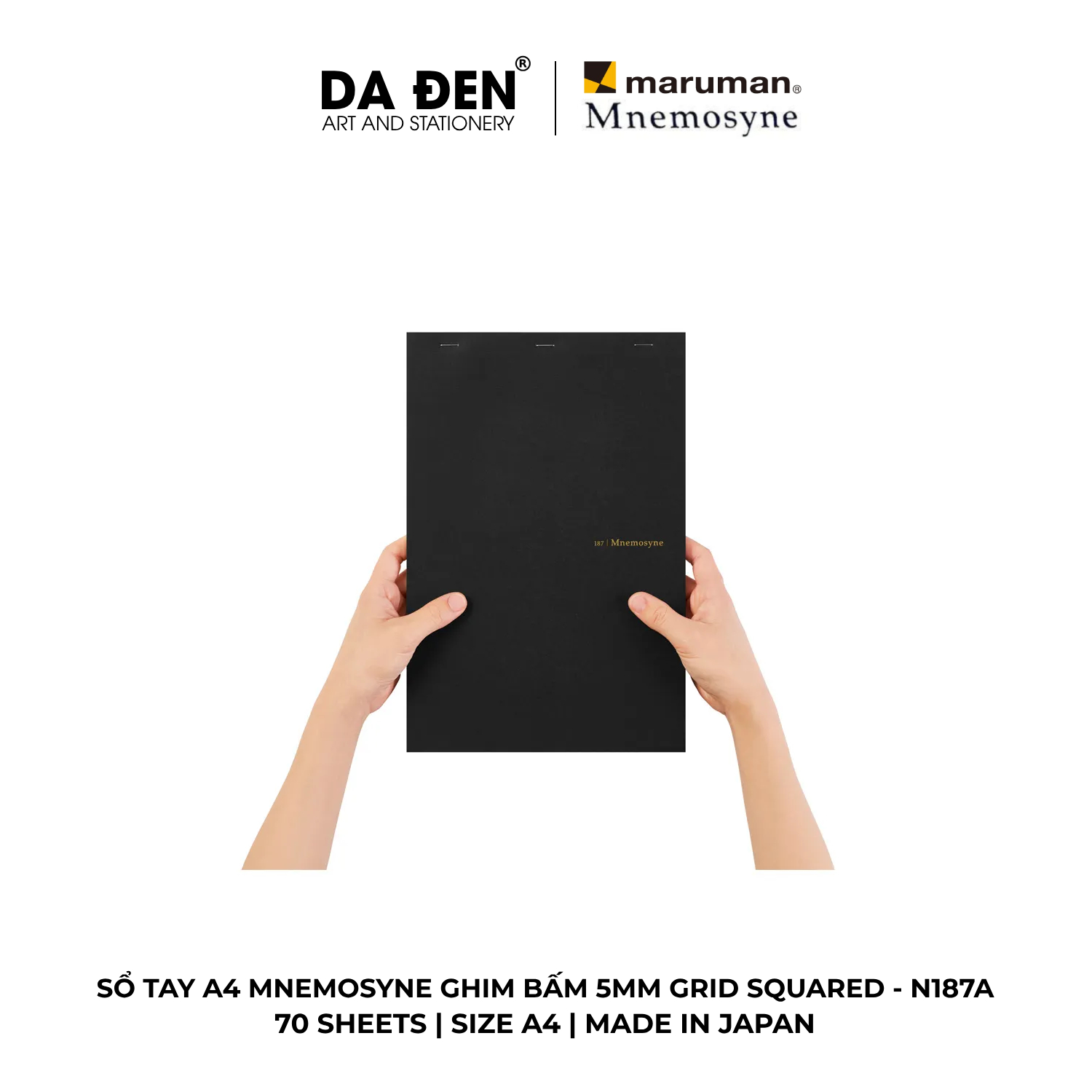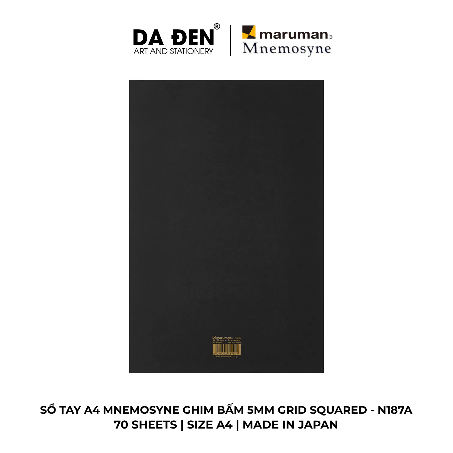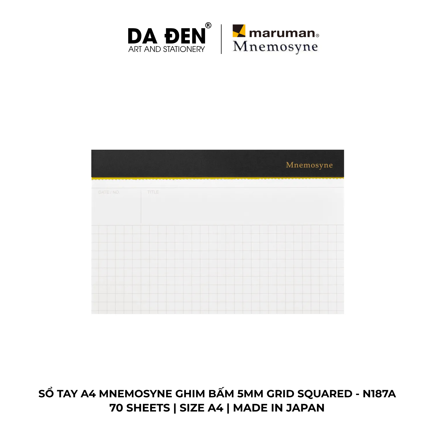 [DA ĐEN] Sổ Tay Maruman Mnemosyne Ghim Bấm 5mm Grid Squared A4 70 Tờ N187A