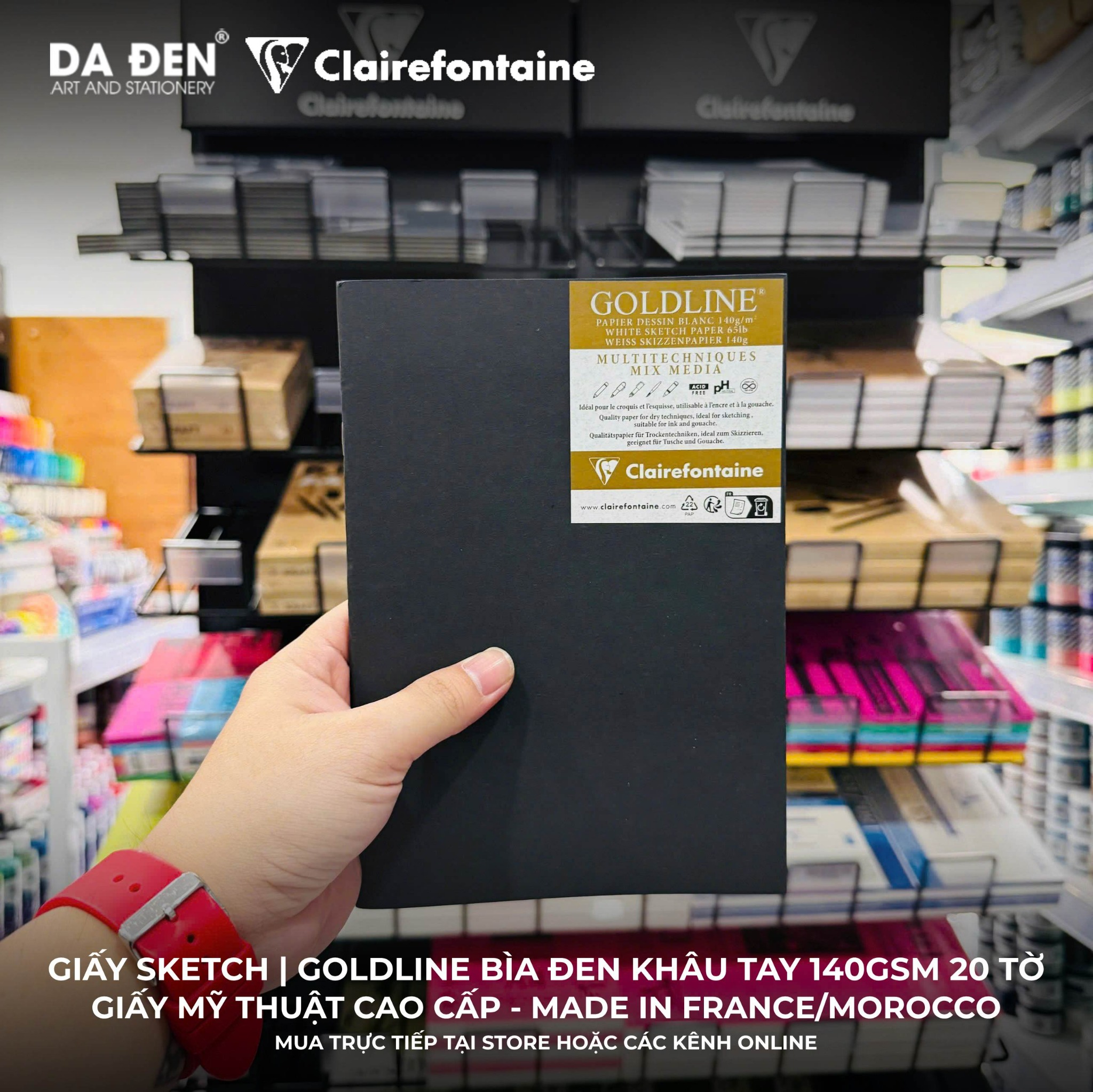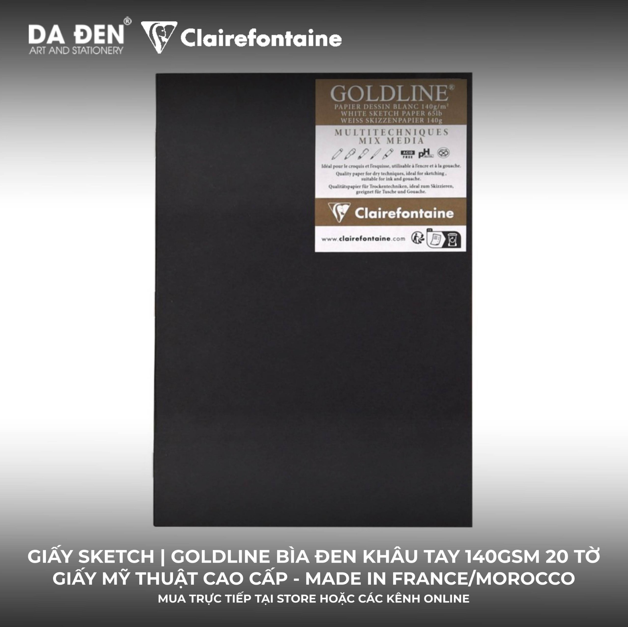 [DA ĐEN] Sổ Vẽ Chì Sketch Clairefontaine Goldline Bìa Đen Khâu Tay 140gsm 20 Tờ
