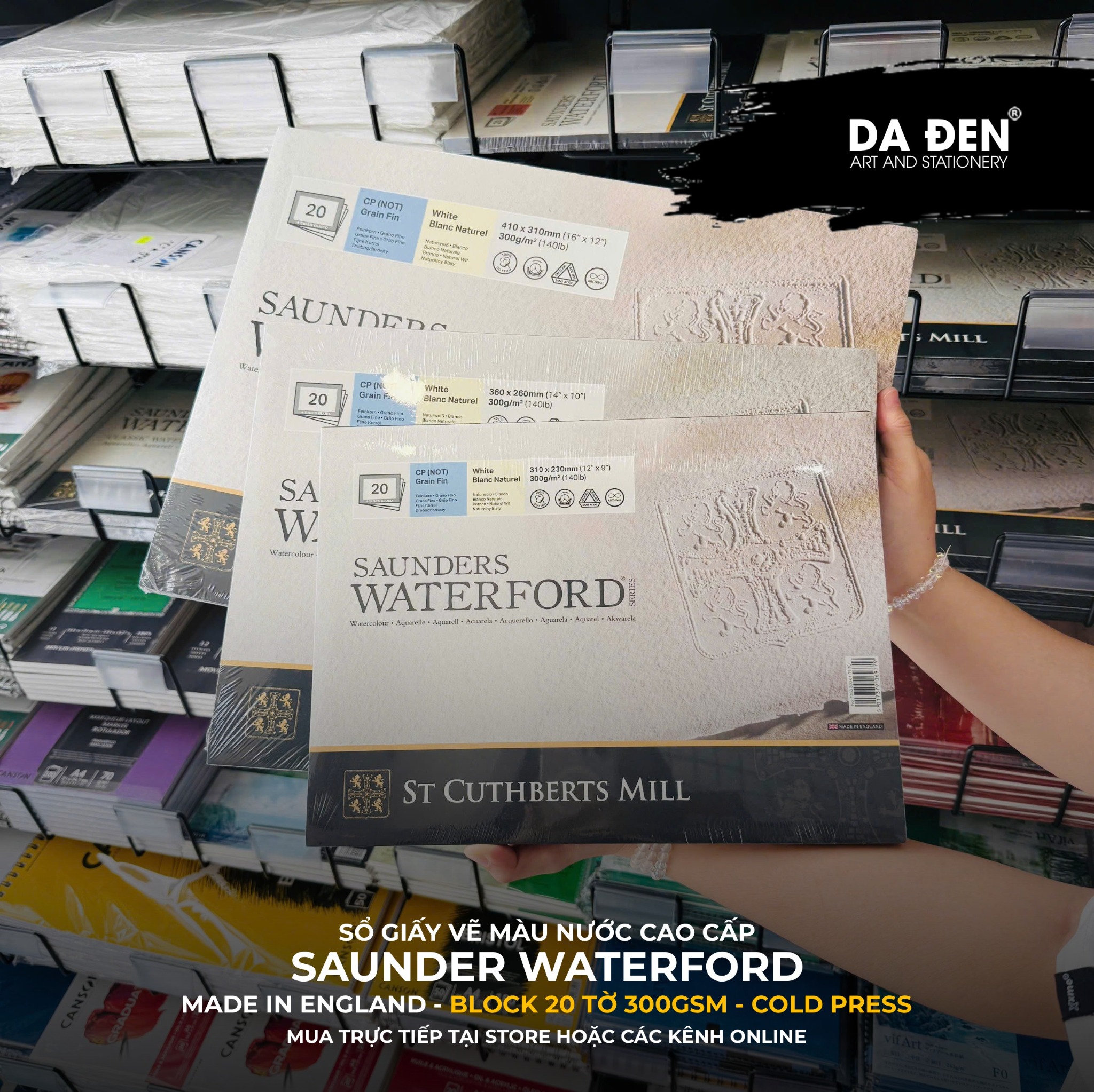 [DA ĐEN] Sổ vẽ màu nước cao cấp Saunders Waterford® đã có mặt tại Họa Cụ DA ĐEN®