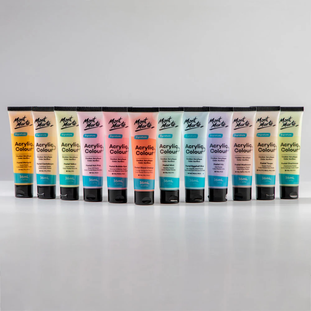 Vui chơi thỏa thích với Bộ sơn màu acrylic màu Pastel 36ml (1,2 US fl.oz) của Mont Marte.