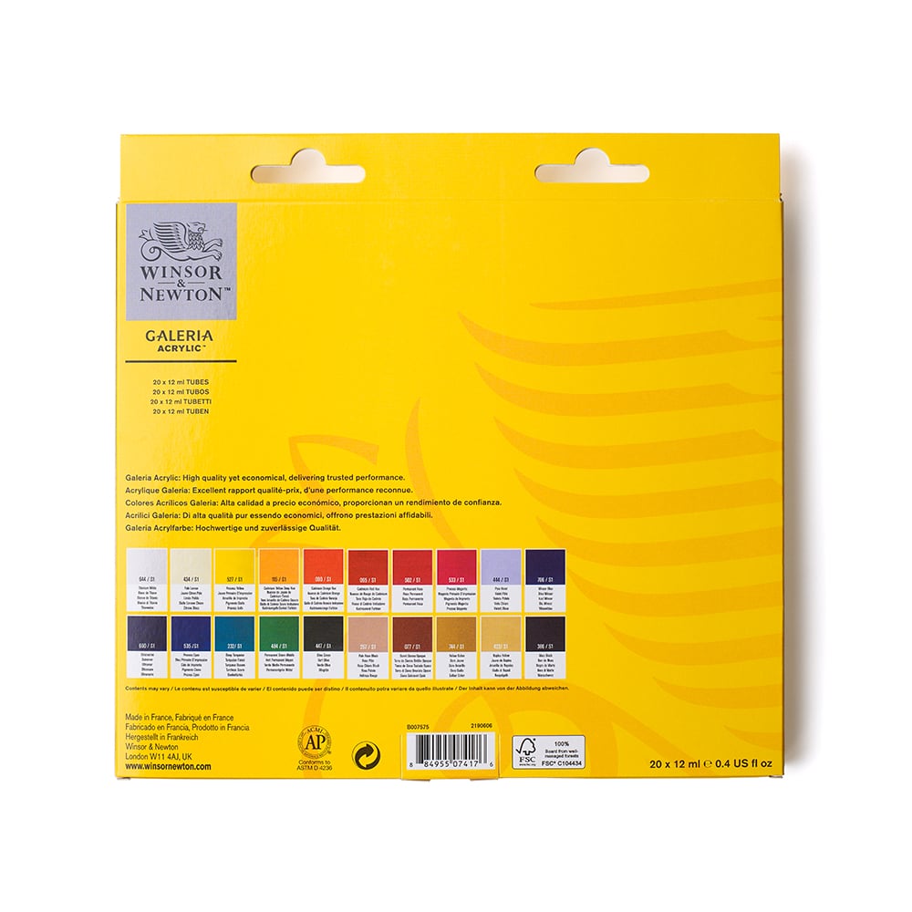 Bộ sản phẩm sơn acrylic Winsor & Newton Galeria 20 x 12ml bao gồm sơn dành cho họa sĩ với tất cả các màu cơ bản mà bạn sẽ cần để bắt đầu vẽ acrylic.