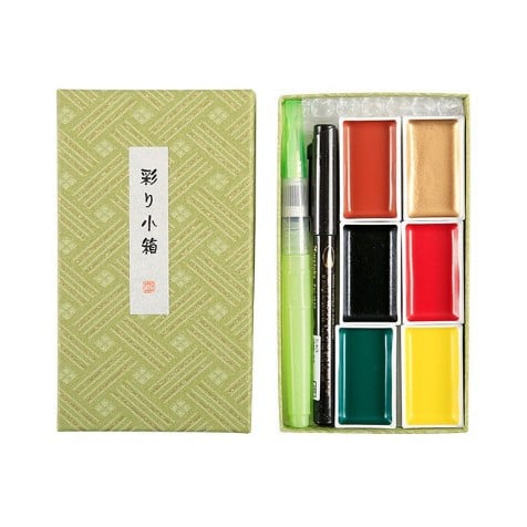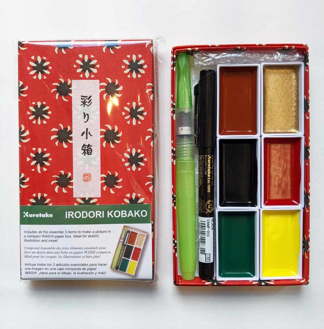 - “Irodori Kobako” là các bộ nhỏ gọn của dòng Gansai Tambi, thường đi kèm bút nước (brush pen) và một cây bút linh hoạt “Mangaka” chuyên nét đen.