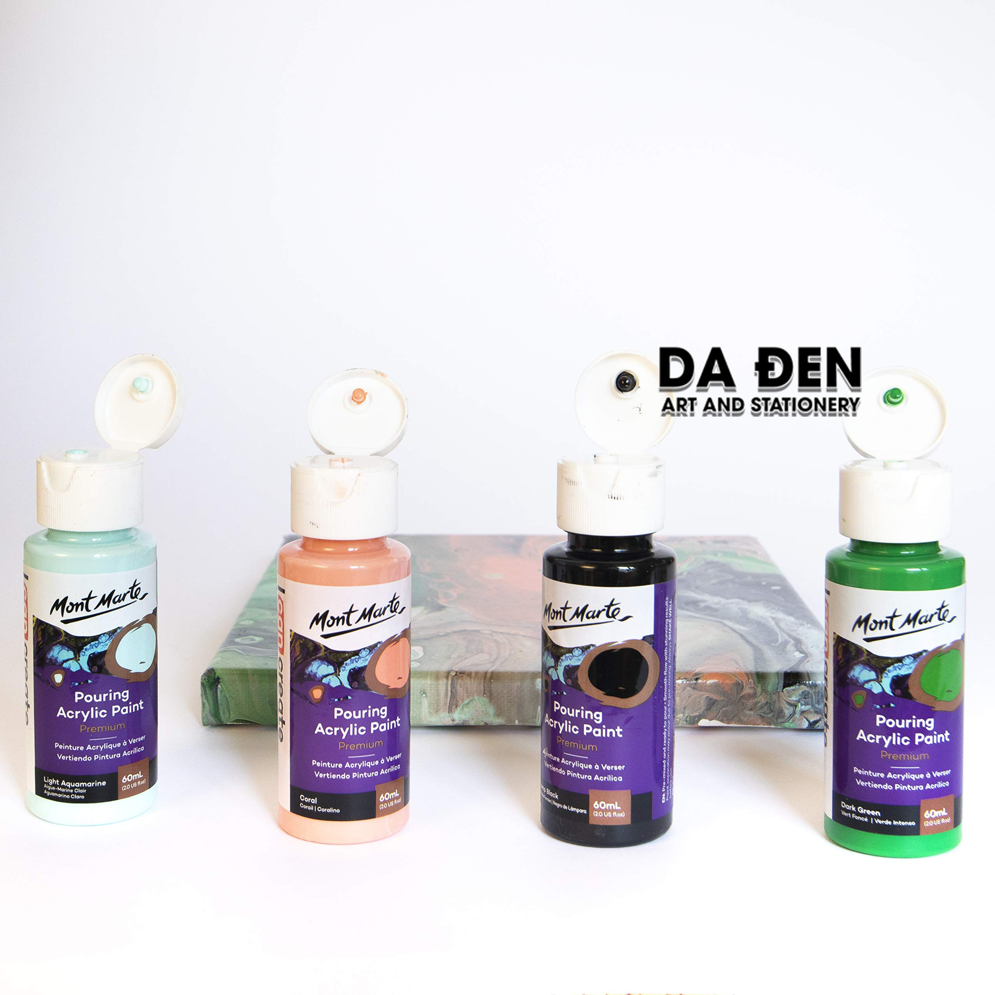 Tạo tác phẩm nghệ thuật linh hoạt của riêng bạn với bộ màu sắc theo chủ đề này! Những loại sơn này đã được trộn sẵn nên tất cả những gì bạn cần làm là đổ chúng lên một tấm bạt hoặc tấm Canvas để tạo nên một kiệt tác.