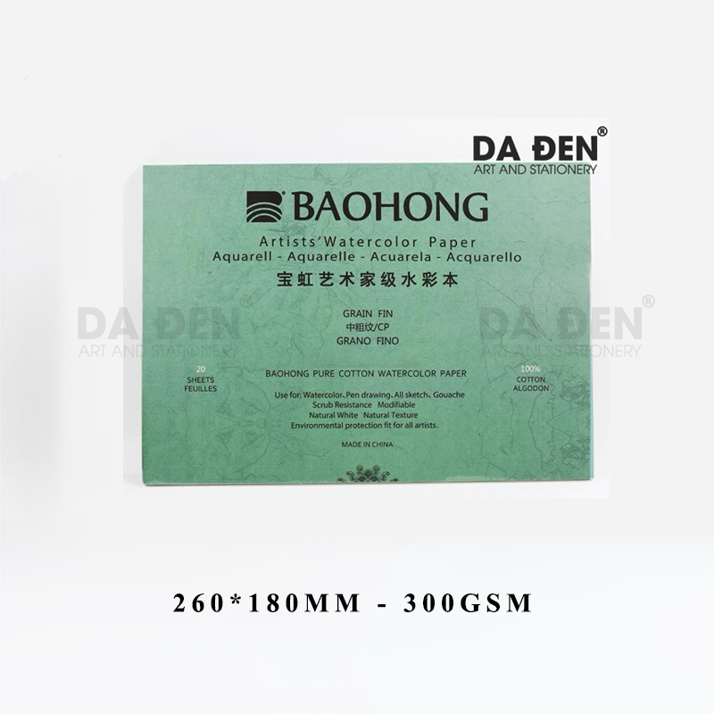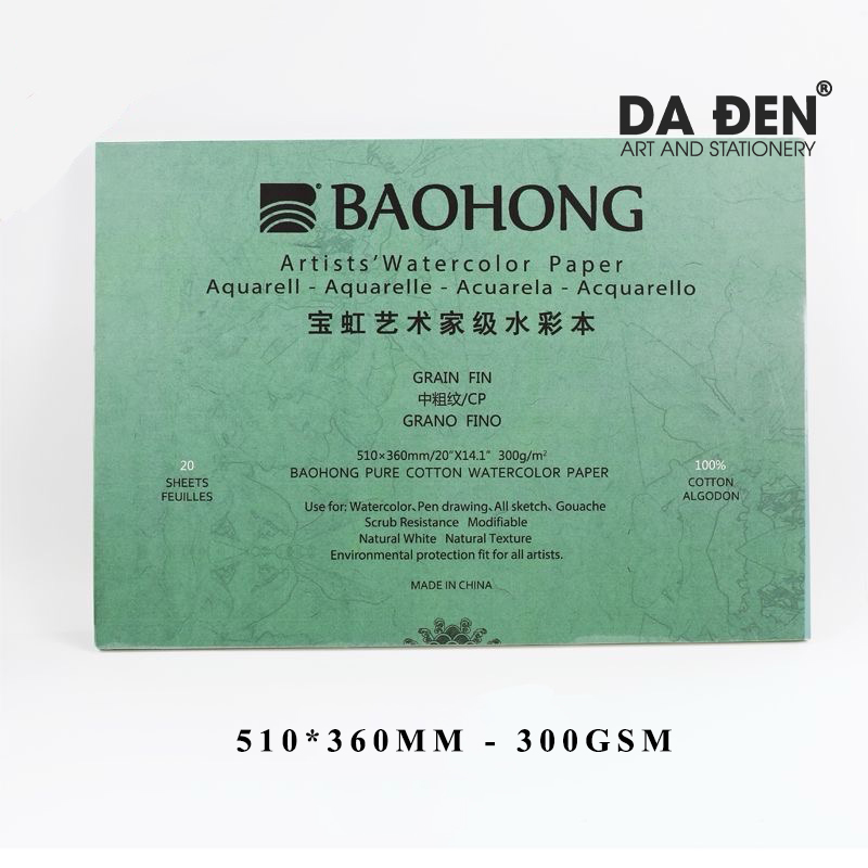 [DA ĐEN] Sổ Vẽ Baohong Artist Màu Nước 300gsm 100% Cotton